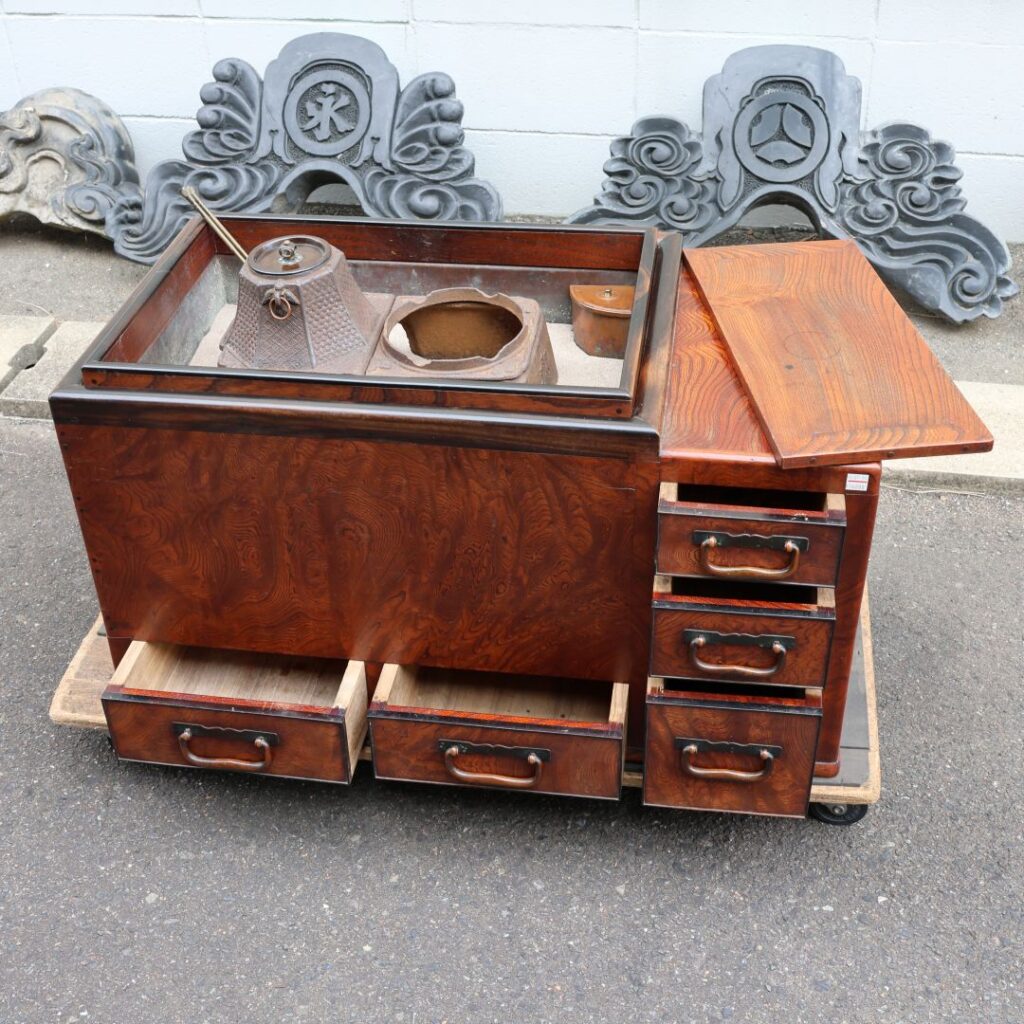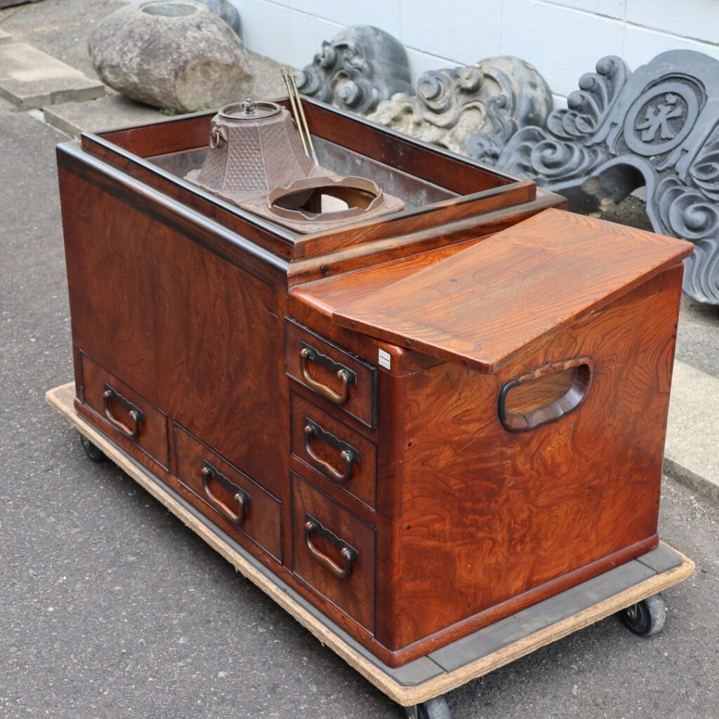 - 木製(特にこのような美しい木目のもの)や陶器製の火鉢、そして金属製の五徳や火箸といった道具一つ一つが、和の風情と趣ある空間を作り出します。