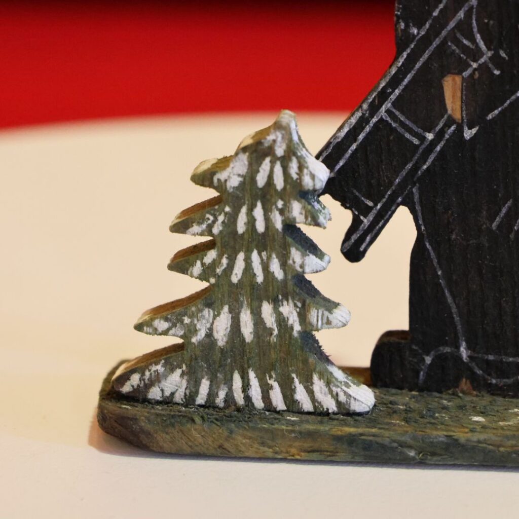 お写真のオーナメントは、一般的な「くるみ割り人形」のような立体(3D)ではなく、板を切り抜いて作られたような平面的なスタイルに見受けられます。