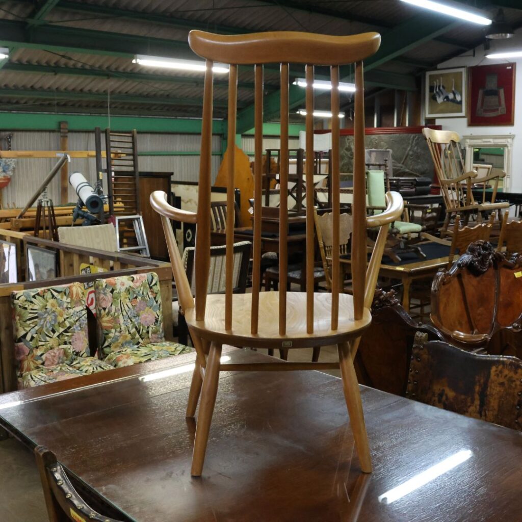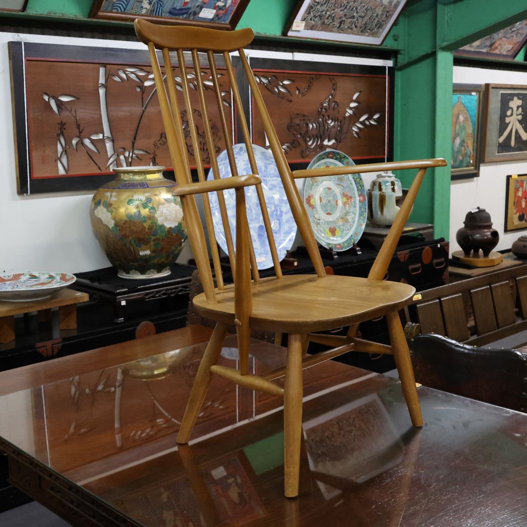 - ブルーラベルの希少性: ブルーラベル(1954-1970年頃)は、アーコールの黄金期の証です。この時代のエルム材は、現在では手に入りにくい肉厚で良質なものが使われており、経年変化による飴色の輝きはヴィンテージだけの特権です。