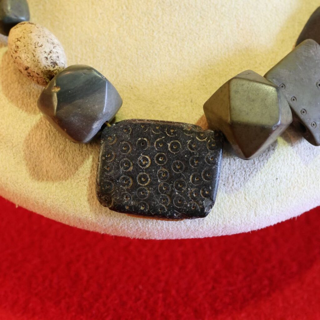 - パルミラはローマ帝国と東方の間で栄えた都市であるため、美術工芸品にもその影響が見られます。この首飾りは、不揃いな天然石や、模様が施された大きな石を組み合わせた、土着的で力強い印象のデザインであり、当時のパルミラの独自性や東西の要素が混じり合ったユニークな美意識を反映していると考えられます。