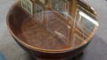 - 上部の濃紺(または深い青)の布地が、下部の明るい木地(おそらく淡い黄土色)と明確なコントラストを生み出し、茶室に落ち着きと洗練された印象を与えます。濃紺は、茶碗などの茶道具を引き立てる色でもあります。