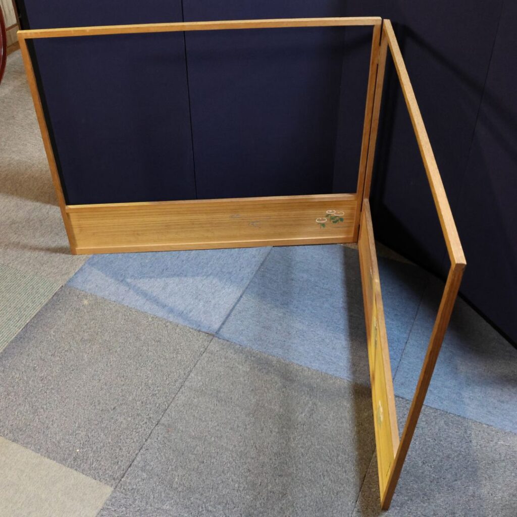 - 絵柄や素材によって、茶室に季節の趣や風情を添えます。屏風そのものが美術品としての価値を持ちます。