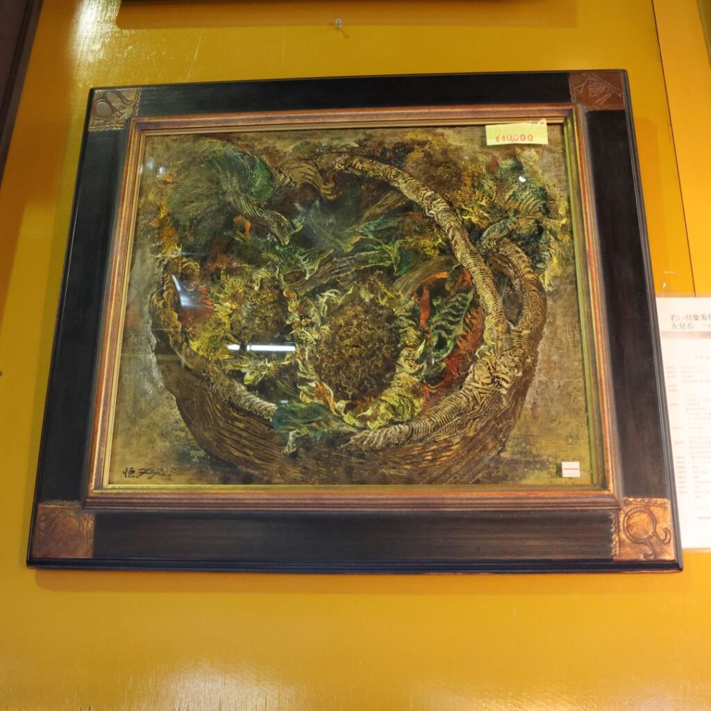 添付画像から、作品は重厚な額装がされており、右上に「¥400,000」の価格札らしきものが見えます。