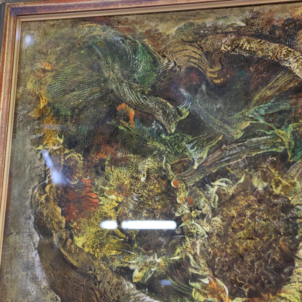 - 分厚い絵の具の層: 絵の具が非常に厚く塗られており、立体的な盛り上がり(インパスト)が見られます。これにより、平面的な絵画でありながら、まるで彫刻やレリーフのような迫力と生命力が生まれています。