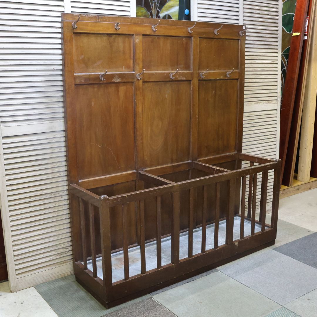 このスタンドの最大の魅力は、その佇まいです。教会の備品や古い洋館を思わせるパネル加工(鏡板)と、年月を重ねた木の質感が、玄関やエントランスに「家の顔」としての威厳を与えてくれます。置くだけでその空間にストーリーが生まれるような、美術品に近い存在感があります。