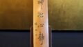- 竹の表面に、山水画のような細やかな彫刻(または焼き絵)が施されています。