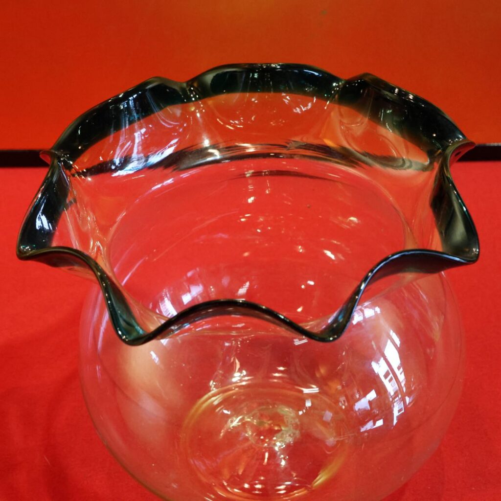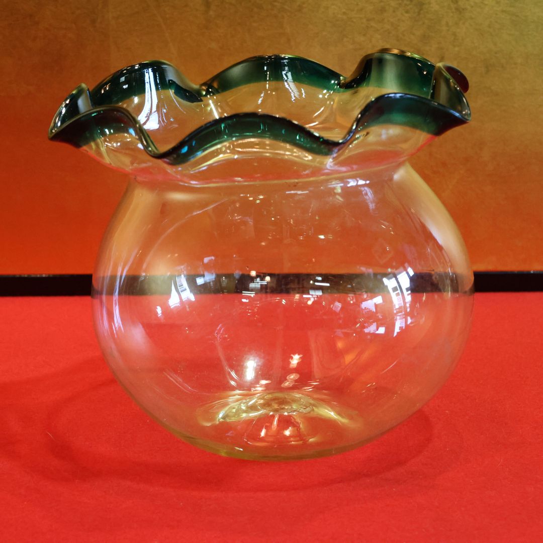 • 色彩のコントラスト: 透明な胴体と、縁の深い緑色(あるいは紺色)の対比が、空間を引き締め、置くだけで床の間や玄関先の主役になります。