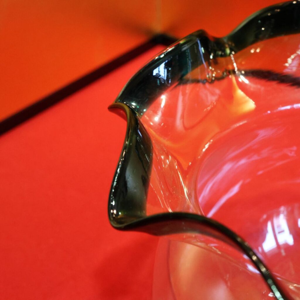 • 視覚的な清涼感: 赤い背景(毛氈など)に置くと、ガラスの透明感と縁の緑がより鮮やかに映え、視覚的に室温を下げるような効果があります。