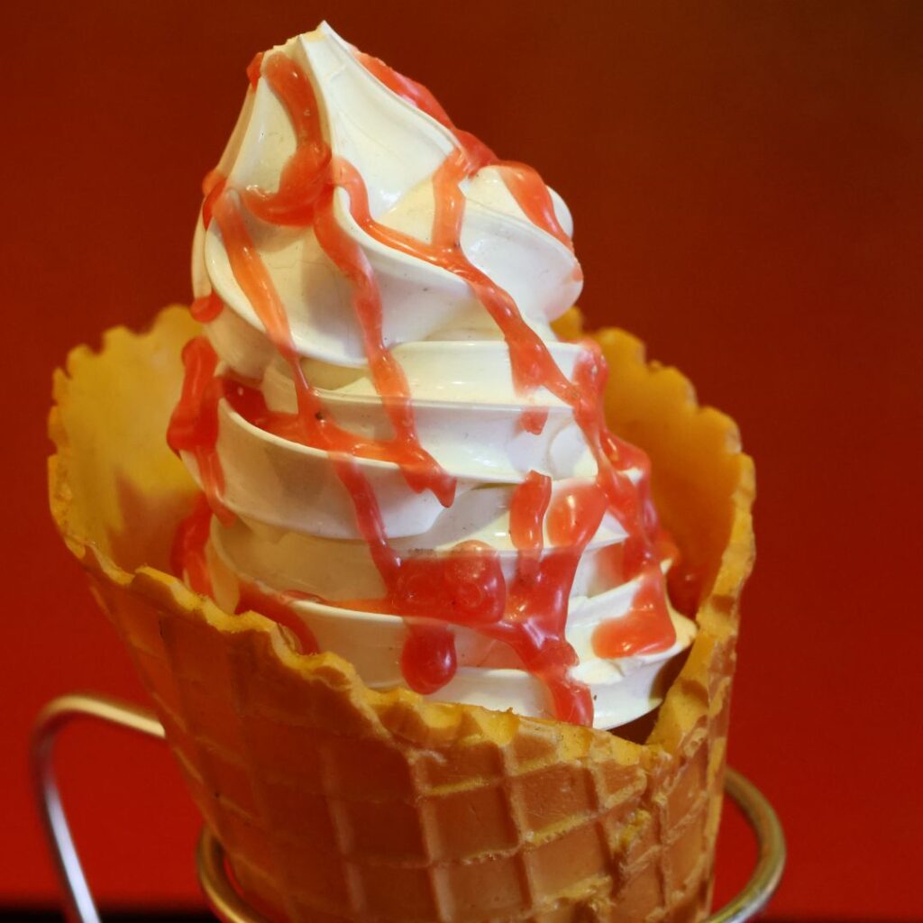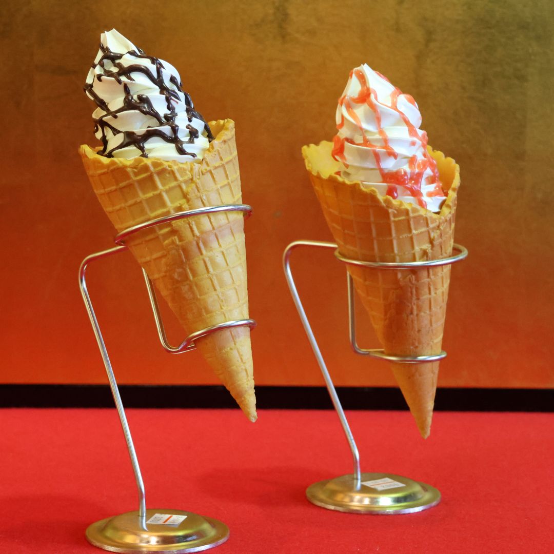 • シズル感の再現: ワッフルコーンの網目の立体感や、ソフトクリームの滑らかな巻き具合など、職人のこだわりが詰まっています。