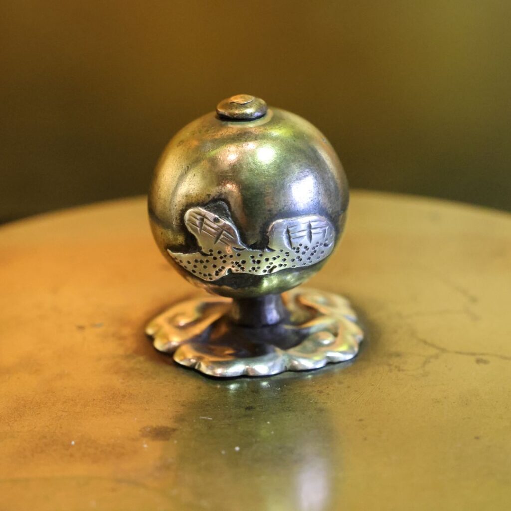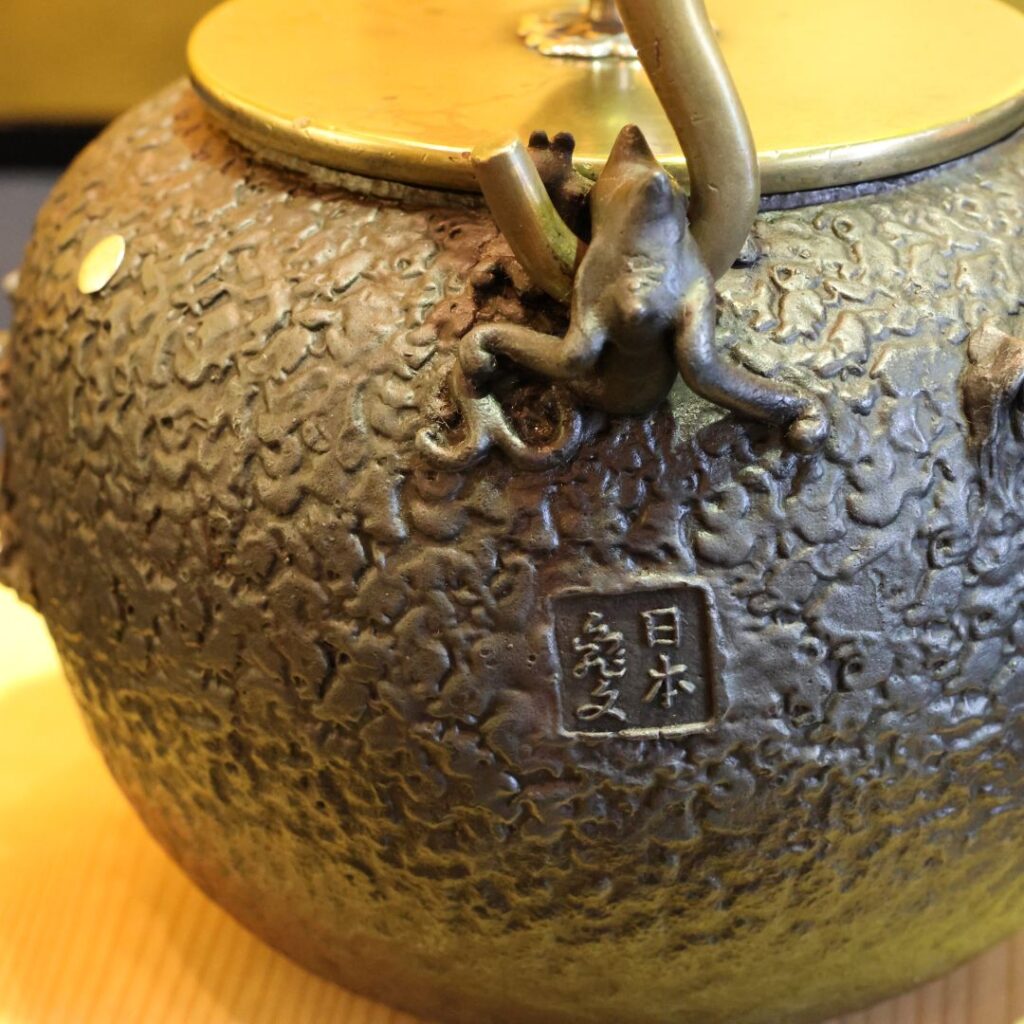 • これは、亀文堂(きぶんどう)という、江戸時代後期から昭和にかけて栄えた京鉄瓶・琵琶湖鉄瓶の代表的な工房の銘と関連付けられることが多いです。