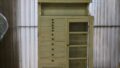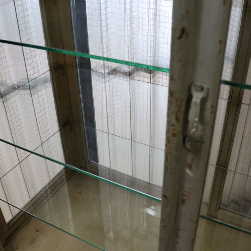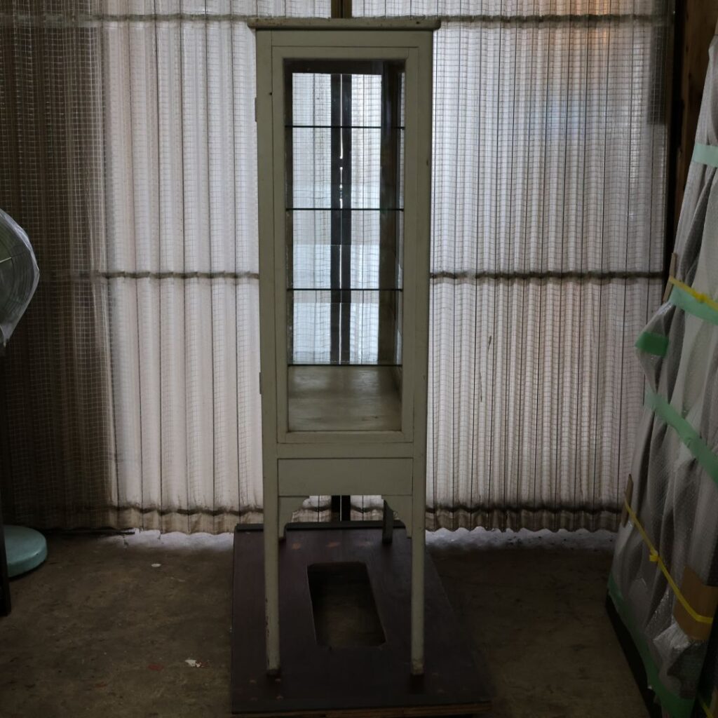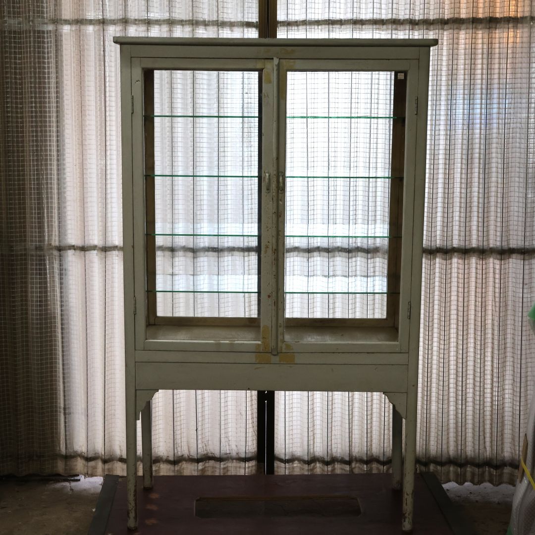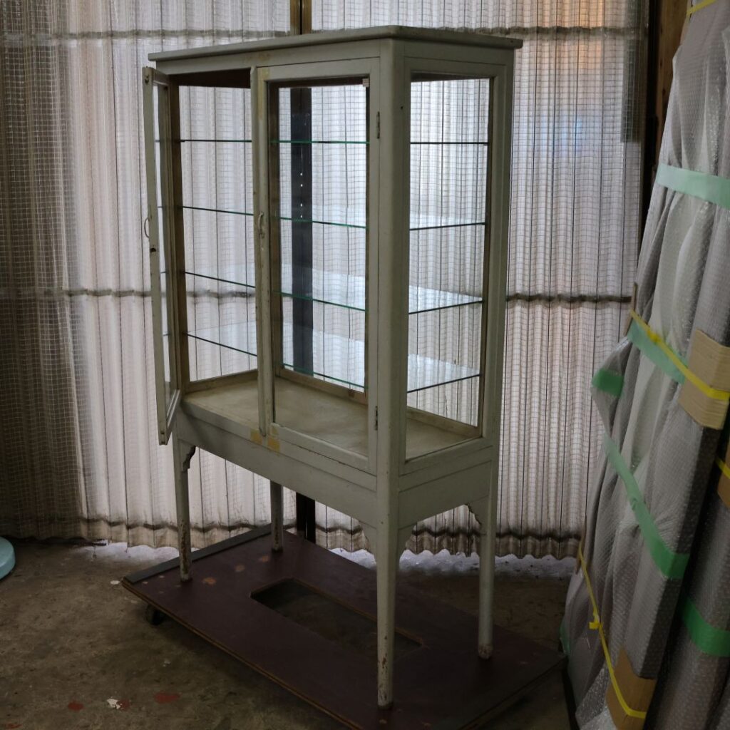 • ガラス張り:前面だけでなく、側面や背面もガラスになっているものが多く(写真のものは前面ガラス扉ですね)、中に飾ったものが美しく際立つのが大きな魅力です。当時の医療用としての「中身を一目で確認できる」という機能性が、現代では最高のディスプレイ効果を生み出しています。