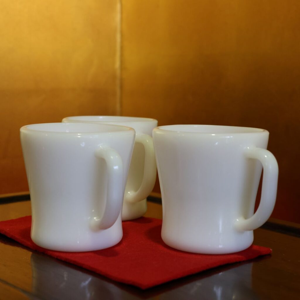 フェデラルのミルクグラスは、有名なファイヤーキングと比べても、光に透かした時の美しさに定評があります。