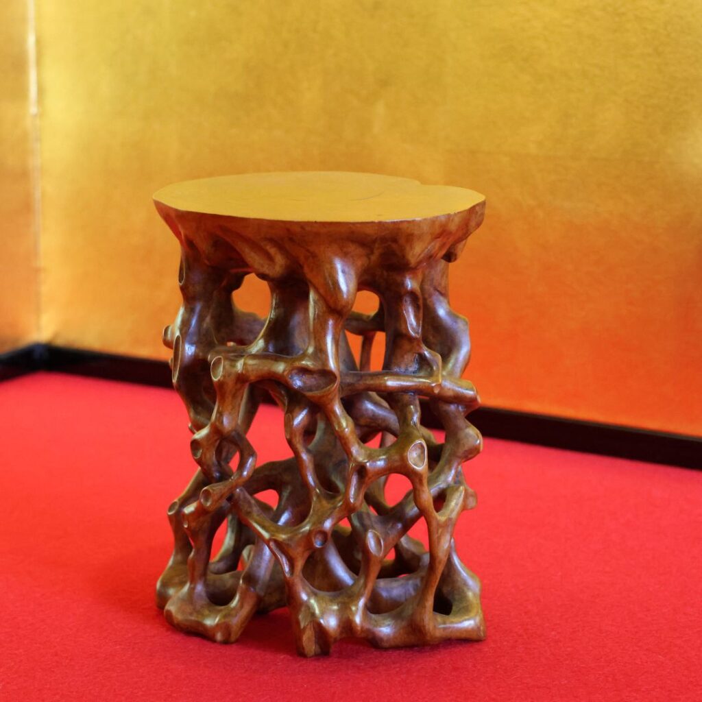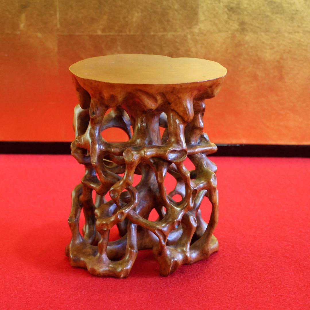 • 格式を高める: 直に置くのではなく、こうした凝った意匠の台座に乗せることで、飾られる対象の「格(グレード)」が一段上がって見えます。