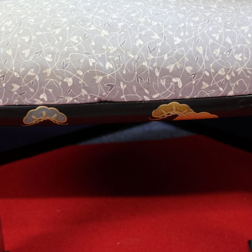 デザイン性・文化的価値:写真のような装飾が施された脇息は、和室の調度品として美しく、空間の雰囲気を高める役割もあります。古くから伝わる日本の安楽用具であり、その文化的な背景も魅力の一つです。