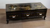 アンティーク家具は、その時代ごとの職人技、デザイン様式、そして当時の生活様式を反映しています。このキャビネットも、イギリスの過去の時代に作られたものであり、それぞれの家具が持つユニークな物語と歴史を持っています。特徴的な木彫りの装飾や、暖かみのある色のエンボス加工されたタイルは、非常に装飾性が高く、空間のアクセントになります。タイルは熱や湿気に強く、汚れが拭き取りやすいという実用性があります。キッチンや洗面台として使われていた可能性も示唆されます。大理石は非常に硬く、日常的な使用に耐える耐久性があります。また、熱にも強いため、熱いものを置いても変形しにくいという利点があります。